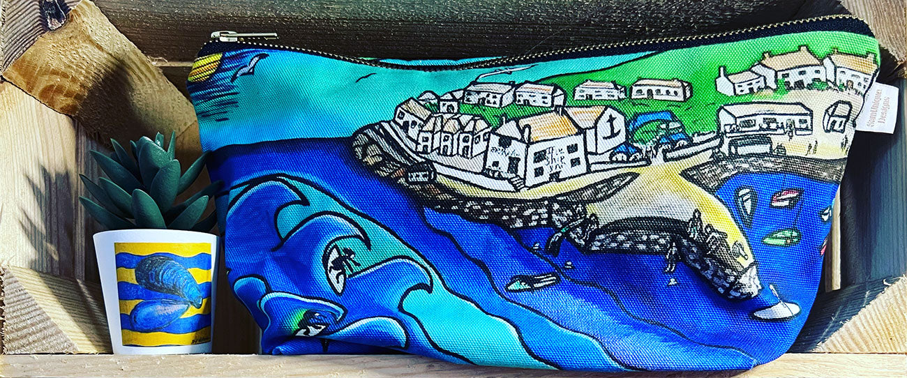 A collection of Cornwall inspired washbags by Sam Rothwell.